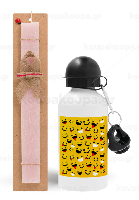 Smilies , Πασχαλινή Λαμπάδα με παγούρι μεταλλικό αλουμινίου (500ml) & κερί αρωματικό πλακέ (30cm) (ΡΟΖ)
