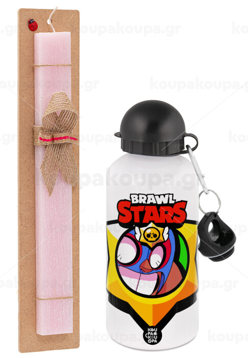 Brawl Stars El primo, Πασχαλινή Λαμπάδα με παγούρι μεταλλικό αλουμινίου (500ml) & κερί αρωματικό πλακέ (30cm) (ΡΟΖ)