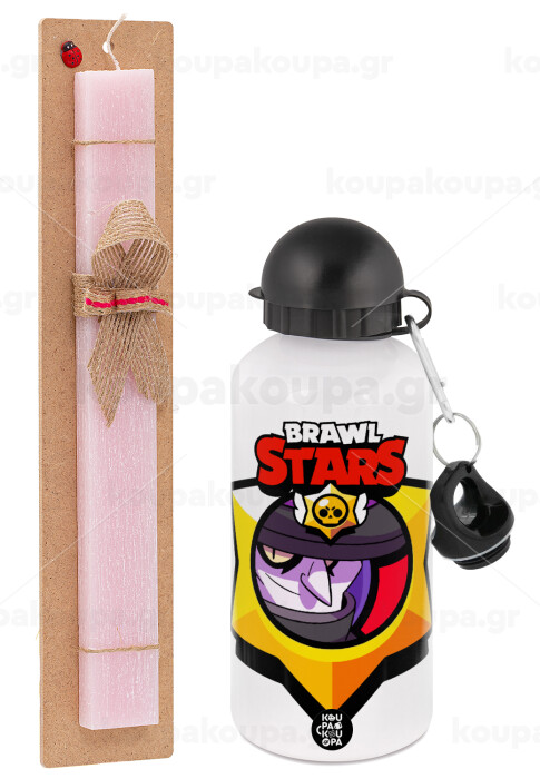 Brawl Stars Mortis, Πασχαλινή Λαμπάδα με παγούρι μεταλλικό αλουμινίου (500ml) & κερί αρωματικό πλακέ (30cm) (ΡΟΖ)