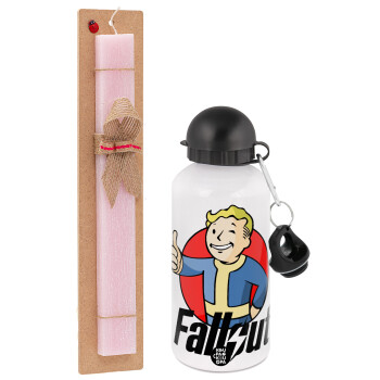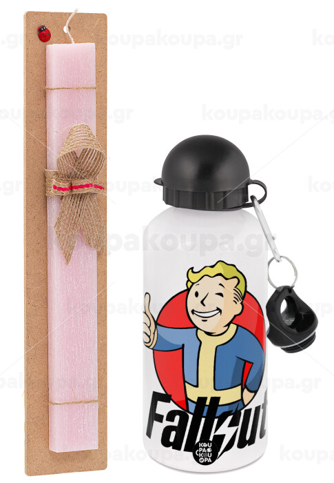Fallout Vault Boy, Πασχαλινή Λαμπάδα με παγούρι μεταλλικό αλουμινίου (500ml) & κερί αρωματικό πλακέ (30cm) (ΡΟΖ)