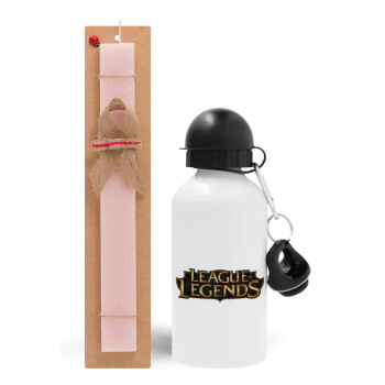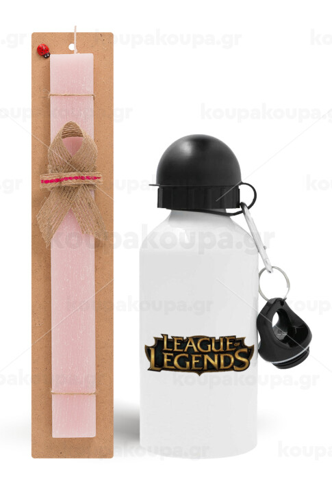 League of Legends LoL, Πασχαλινή Λαμπάδα με παγούρι μεταλλικό αλουμινίου (500ml) & κερί αρωματικό πλακέ (30cm) (ΡΟΖ)