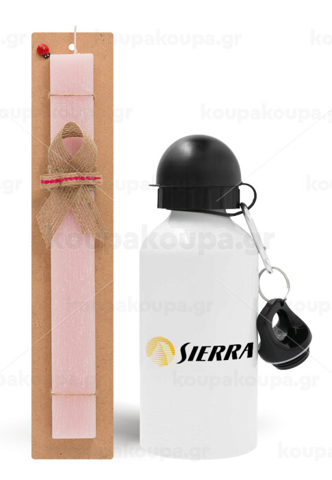 SIERRA, Πασχαλινή Λαμπάδα με παγούρι μεταλλικό αλουμινίου (500ml) & κερί αρωματικό πλακέ (30cm) (ΡΟΖ)