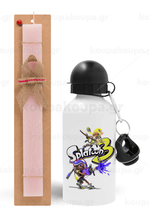 Splatoon 3, Πασχαλινή Λαμπάδα με παγούρι μεταλλικό αλουμινίου (500ml) & κερί αρωματικό πλακέ (30cm) (ΡΟΖ)