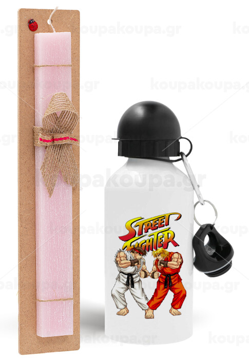 Street fighter, Πασχαλινή Λαμπάδα με παγούρι μεταλλικό αλουμινίου (500ml) & κερί αρωματικό πλακέ (30cm) (ΡΟΖ)