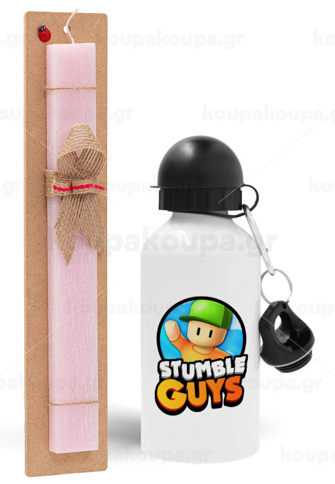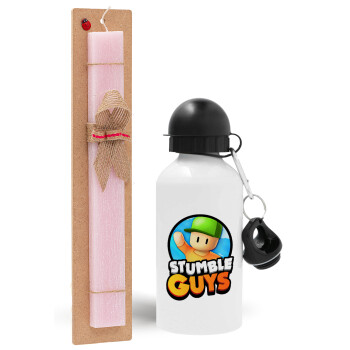 Stumble Guys, Πασχαλινή Λαμπάδα με παγούρι μεταλλικό αλουμινίου (500ml) & κερί αρωματικό πλακέ (30cm) (ΡΟΖ)