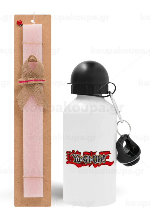 Yu-Gi-Oh, Πασχαλινή Λαμπάδα με παγούρι μεταλλικό αλουμινίου (500ml) & κερί αρωματικό πλακέ (30cm) (ΡΟΖ)