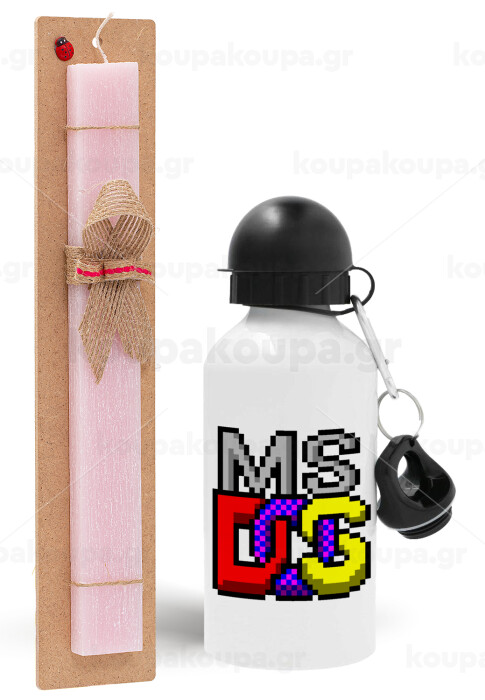 MsDos, Πασχαλινή Λαμπάδα με παγούρι μεταλλικό αλουμινίου (500ml) & κερί αρωματικό πλακέ (30cm) (ΡΟΖ)