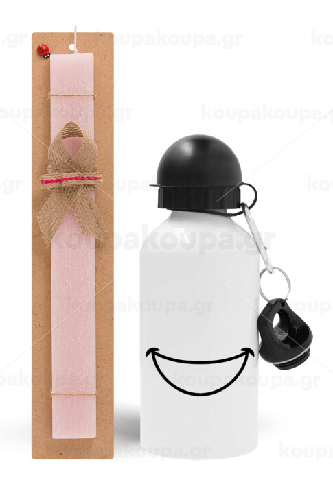 Χαμογέλα, Πασχαλινή Λαμπάδα με παγούρι μεταλλικό αλουμινίου (500ml) & κερί αρωματικό πλακέ (30cm) (ΡΟΖ)