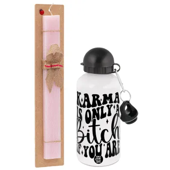 Karma is Only A Bitch if You Are, Πασχαλινή Λαμπάδα με παγούρι μεταλλικό αλουμινίου (500ml) & κερί αρωματικό πλακέ (30cm) (ΡΟΖ)