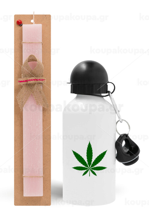Weed, Πασχαλινή Λαμπάδα με παγούρι μεταλλικό αλουμινίου (500ml) & κερί αρωματικό πλακέ (30cm) (ΡΟΖ)