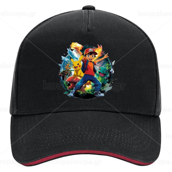 Ash Ketchum & Pikachu, DRILL Καπέλο Ενηλίκων Ultimate ΜΑΥΡΟ/ΚΟΚΚΙΝΟ, (100% ΒΑΜΒΑΚΕΡΟ, ΕΝΗΛΙΚΩΝ, UNISEX, ONE SIZE)