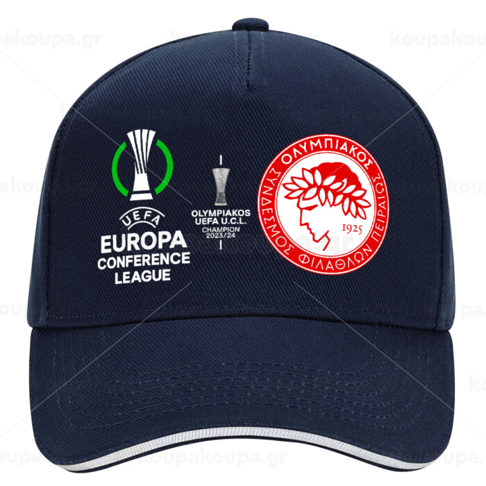 Ολυμπιακός νικητής UEFA Europa Conference League Champion 2023/24, DRILL Καπέλο Ενηλίκων Ultimate ΜΠΛΕ/ΛΕΥΚΟ, (100% ΒΑΜΒΑΚΕΡΟ, ΕΝΗΛΙΚΩΝ, UNISEX, ONE SIZE)