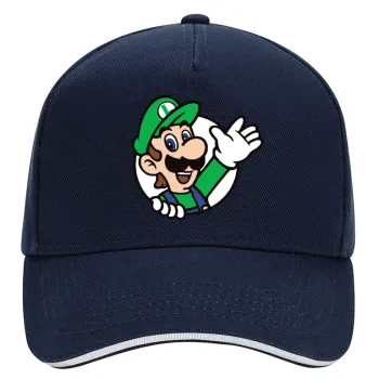 Super mario Luigi win, DRILL Καπέλο Ενηλίκων Ultimate ΜΠΛΕ/ΛΕΥΚΟ, (100% ΒΑΜΒΑΚΕΡΟ, ΕΝΗΛΙΚΩΝ, UNISEX, ONE SIZE)