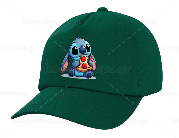 Stitch Pizza, Twill Καπέλο παιδικό Bottle Green (100% ΒΑΜΒΑΚΕΡΟ, ΠΑΙΔΙΚΟ, UNISEX)