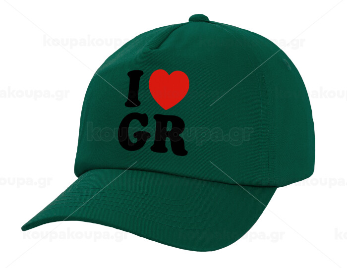 I Love GR, Twill Καπέλο παιδικό Bottle Green (100% ΒΑΜΒΑΚΕΡΟ, ΠΑΙΔΙΚΟ, UNISEX)
