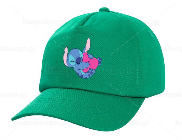 Lilo & Stitch hugs and hearts, Καπέλο παιδικό Baseball, 100% Βαμβακερό Twill, Πράσινο (ΒΑΜΒΑΚΕΡΟ, ΠΑΙΔΙΚΟ, UNISEX, ONE SIZE)