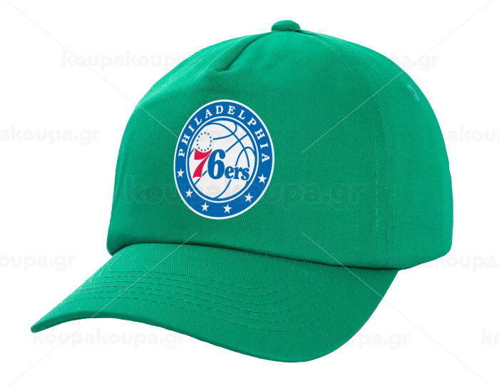 Philadelphia 76ers, Καπέλο παιδικό Baseball, 100% Βαμβακερό Twill, Πράσινο (ΒΑΜΒΑΚΕΡΟ, ΠΑΙΔΙΚΟ, UNISEX, ONE SIZE)