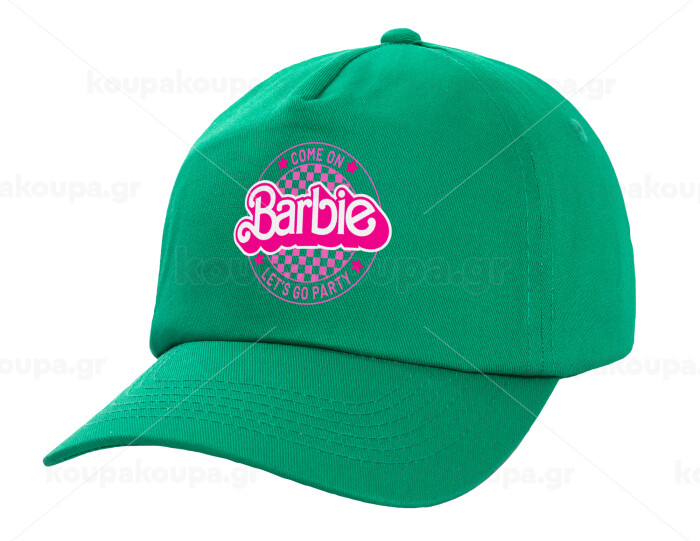 Come On Barbie Lets Go Party , Καπέλο παιδικό Baseball, 100% Βαμβακερό Twill, Πράσινο (ΒΑΜΒΑΚΕΡΟ, ΠΑΙΔΙΚΟ, UNISEX, ONE SIZE)