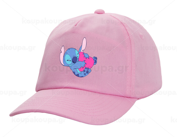 Lilo & Stitch hugs and hearts, Καπέλο παιδικό casual μπειζμπολ, 100% Βαμβακερό Twill, ΡΟΖ (ΒΑΜΒΑΚΕΡΟ, ΠΑΙΔΙΚΟ, ONE SIZE)