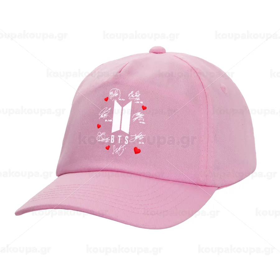 BTS signs, Καπέλο παιδικό casual μπειζμπολ, 100% Βαμβακερό Twill, ΡΟΖ (ΒΑΜΒΑΚΕΡΟ, ΠΑΙΔΙΚΟ, ONE SIZE)