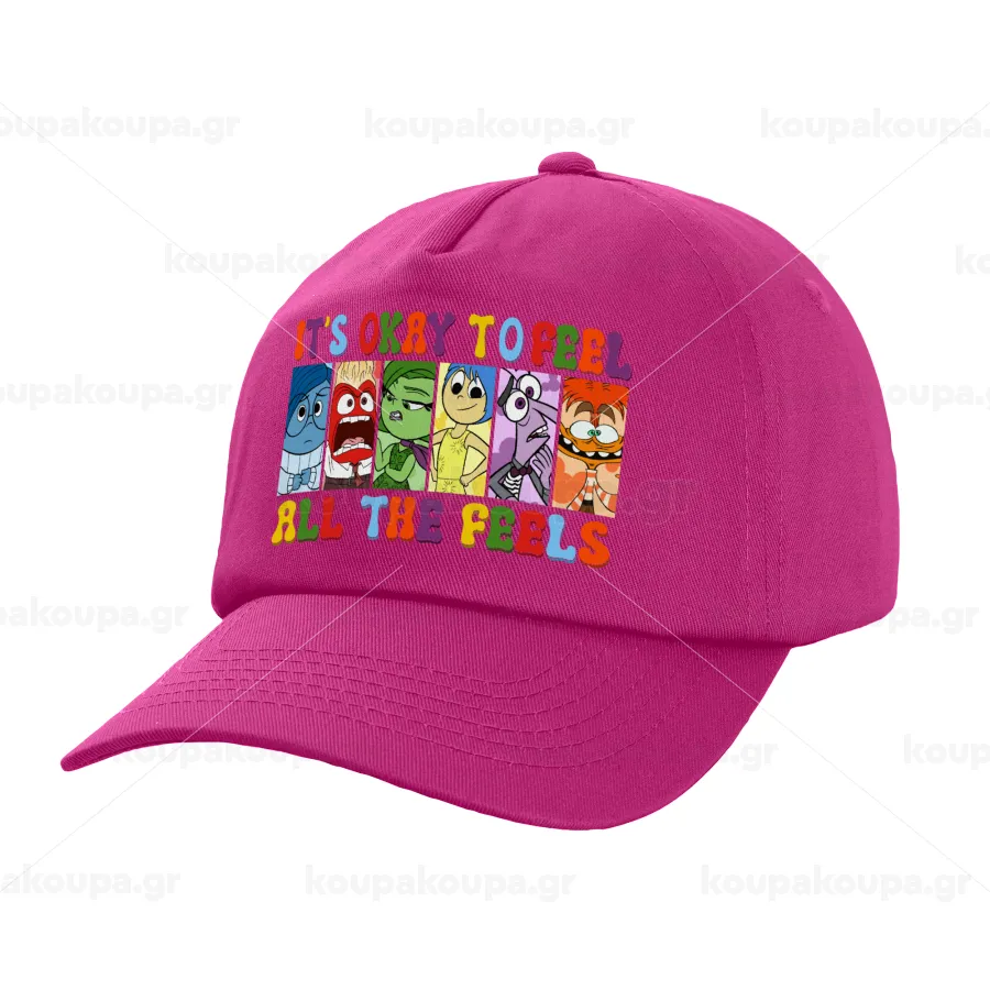 Inside Out It's Okay To Feel All The Feels , Καπέλο παιδικό Baseball, 100% Βαμβακερό Twill, Φούξια (ΒΑΜΒΑΚΕΡΟ, ΠΑΙΔΙΚΟ, UNISEX, ONE SIZE)