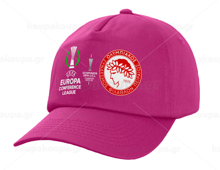 Ολυμπιακός νικητής UEFA Europa Conference League Champion 2023/24, Καπέλο παιδικό Baseball, 100% Βαμβακερό Twill, Φούξια (ΒΑΜΒΑΚΕΡΟ, ΠΑΙΔΙΚΟ, UNISEX, ONE SIZE)