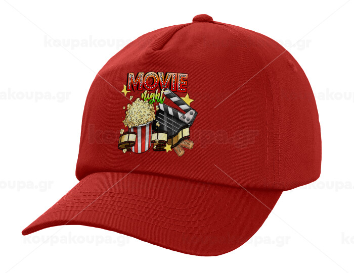 Movie night, Καπέλο παιδικό Baseball, 100% Βαμβακερό Twill, Κόκκινο (ΒΑΜΒΑΚΕΡΟ, ΠΑΙΔΙΚΟ, UNISEX, ONE SIZE)