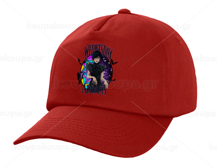 Wednesday Jenna Ortega, Καπέλο παιδικό Baseball, 100% Βαμβακερό Twill, Κόκκινο (ΒΑΜΒΑΚΕΡΟ, ΠΑΙΔΙΚΟ, UNISEX, ONE SIZE)