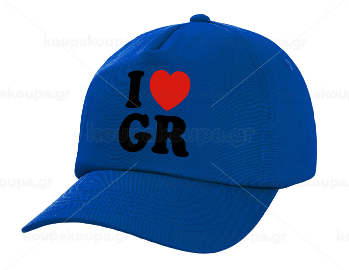 I Love GR, Twill Καπέλο παιδικό ΜΠΛΕ (100% ΒΑΜΒΑΚΕΡΟ, ΠΑΙΔΙΚΟ, UNISEX)
