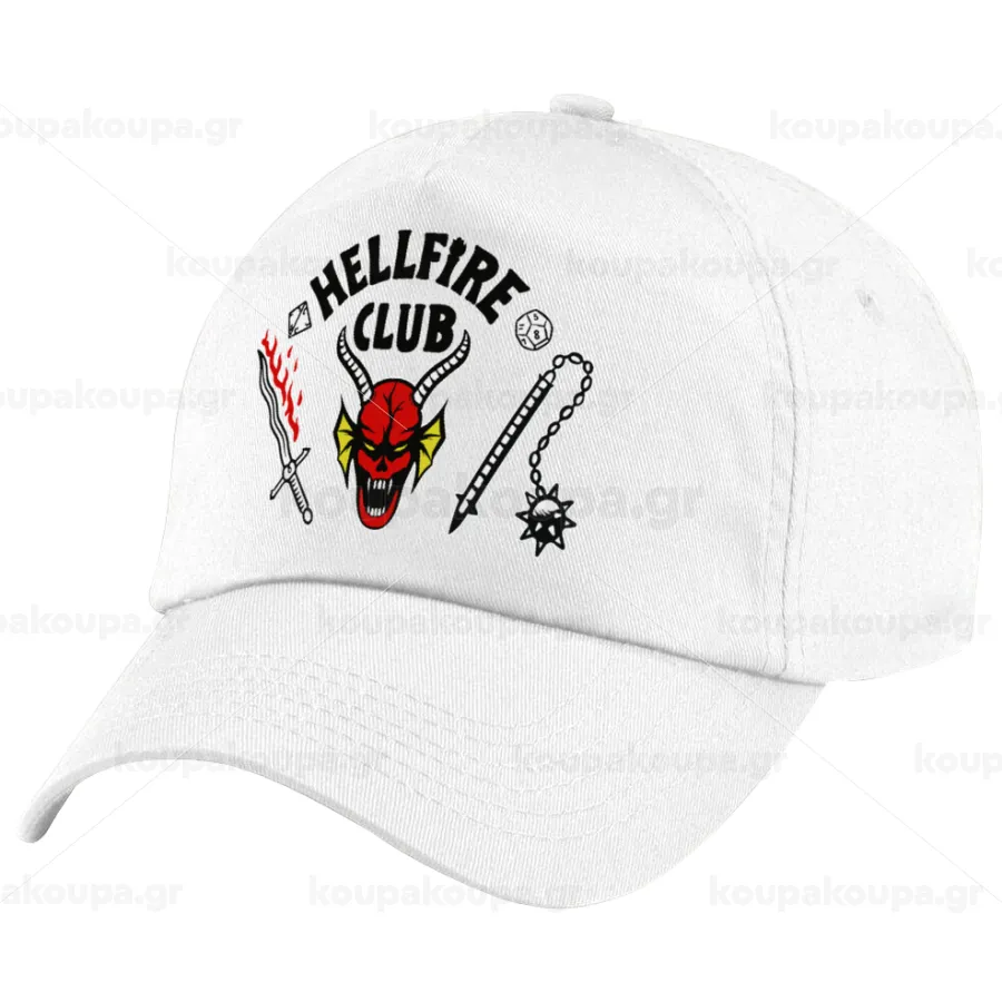Hellfire CLub, Stranger Things, Καπέλο παιδικό Baseball, 100% Βαμβακερό Twill, Λευκό (ΒΑΜΒΑΚΕΡΟ, ΠΑΙΔΙΚΟ, UNISEX, ONE SIZE)