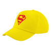 Superman, Καπέλο παιδικό Baseball, 100% Βαμβακερό Twill, Κίτρινο (ΒΑΜΒΑΚΕΡΟ, ΠΑΙΔΙΚΟ, UNISEX, ONE SIZE)