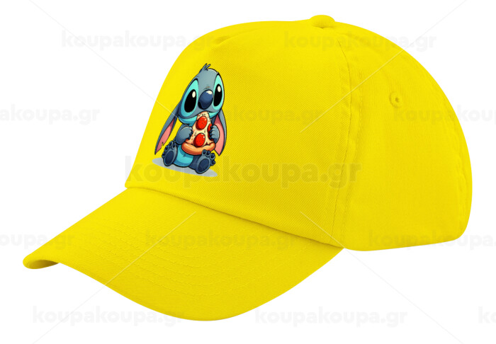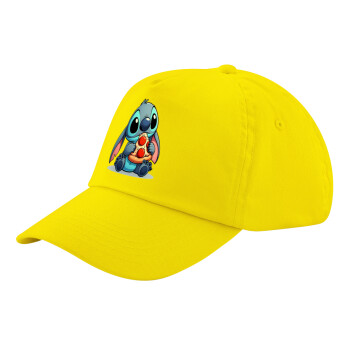 Stitch Pizza, Καπέλο παιδικό Baseball, 100% Βαμβακερό Twill, Κίτρινο (ΒΑΜΒΑΚΕΡΟ, ΠΑΙΔΙΚΟ, UNISEX, ONE SIZE)