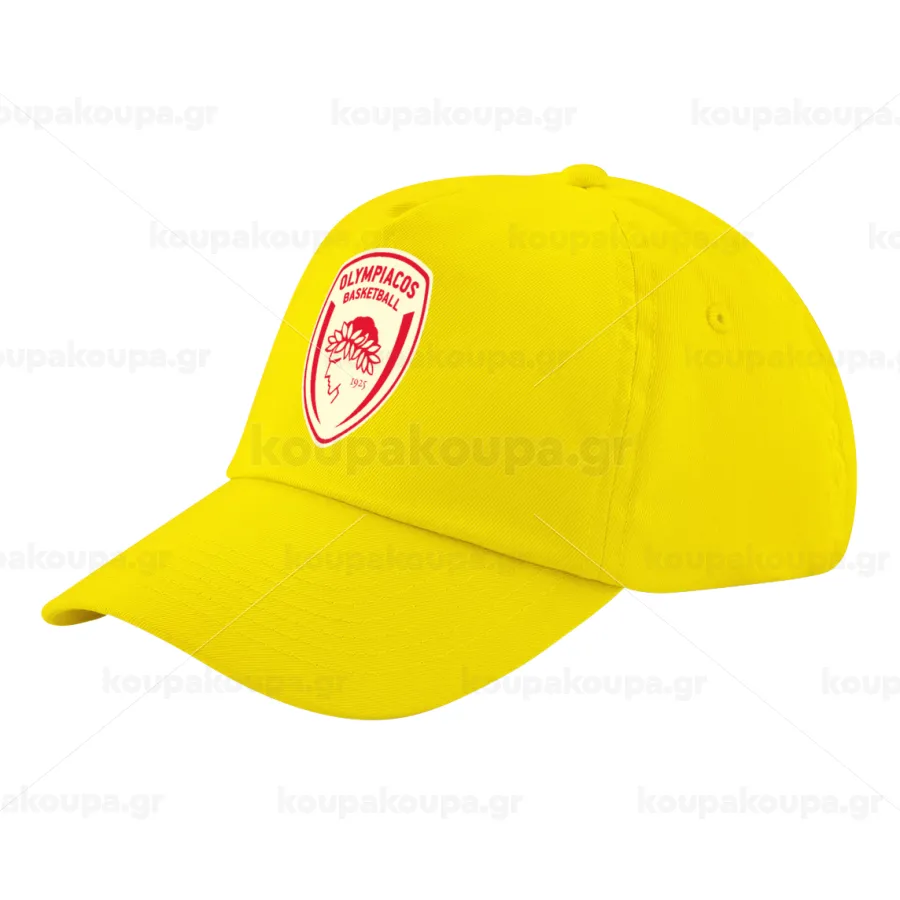 Olympiacos B.C., Καπέλο παιδικό Baseball, 100% Βαμβακερό Twill, Κίτρινο (ΒΑΜΒΑΚΕΡΟ, ΠΑΙΔΙΚΟ, UNISEX, ONE SIZE)