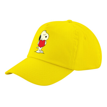 Snoopy takemy heart, Καπέλο παιδικό Baseball, 100% Βαμβακερό Twill, Κίτρινο (ΒΑΜΒΑΚΕΡΟ, ΠΑΙΔΙΚΟ, UNISEX, ONE SIZE)