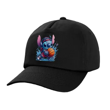 Stitch Basketball, Καπέλο παιδικό Baseball, 100% Βαμβακερό, Μαύρο