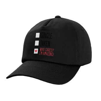 Single, Taken, Who cares i'm amazing, Καπέλο παιδικό Baseball, 100% Βαμβακερό, Μαύρο
