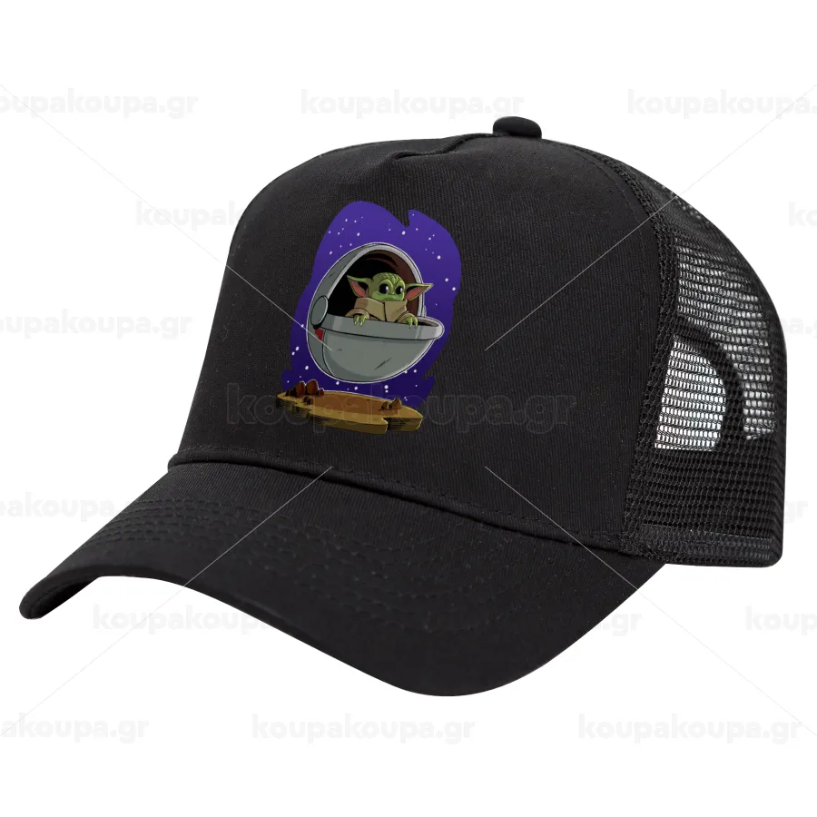 Baby Yoda mandalorian, Καπέλο Trucker με Δίχτυ, Μαύρο, (ΒΑΜΒΑΚΕΡΟ, ΠΑΙΔΙΚΟ, UNISEX, ONE SIZE)