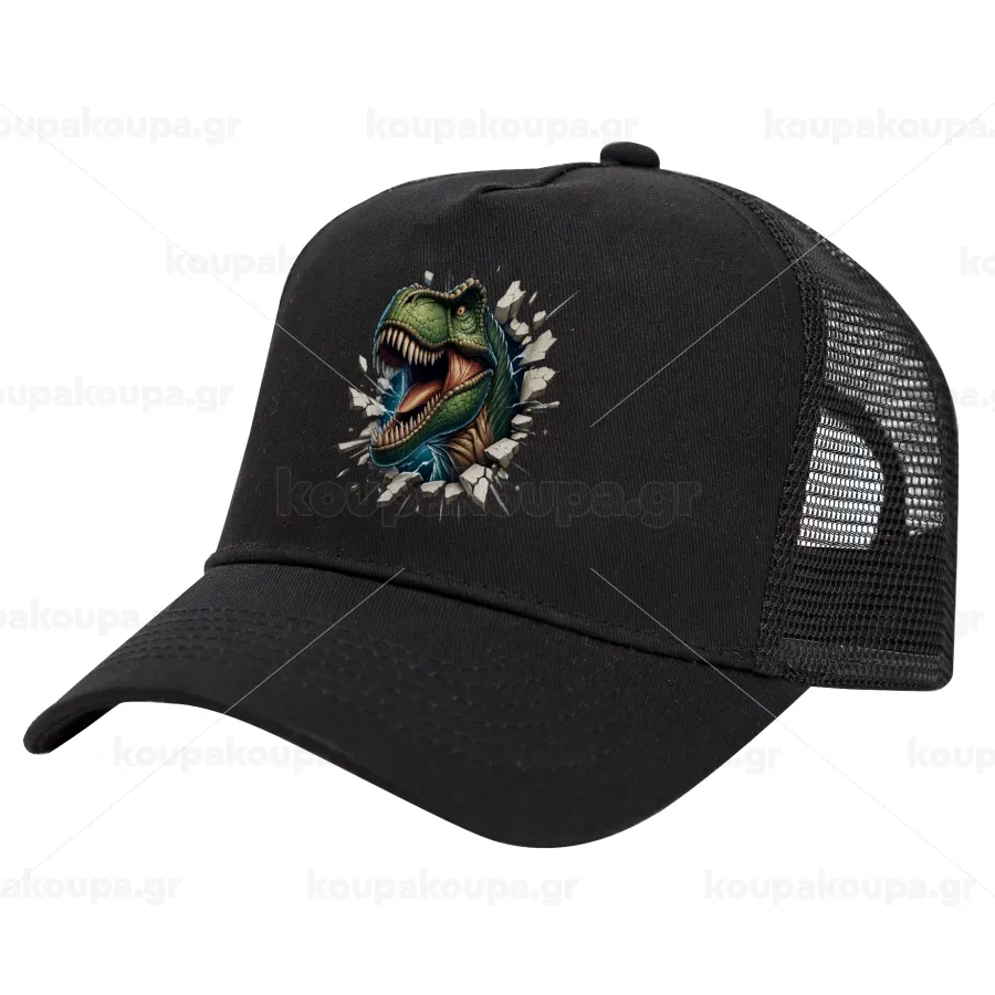Dinosaur break wall, Καπέλο Trucker με Δίχτυ, Μαύρο, (ΒΑΜΒΑΚΕΡΟ, ΠΑΙΔΙΚΟ, UNISEX, ONE SIZE)