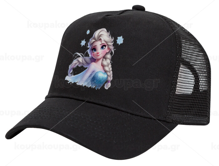 Elsa Princess, Καπέλο Trucker με Δίχτυ, Μαύρο, (ΒΑΜΒΑΚΕΡΟ, ΠΑΙΔΙΚΟ, UNISEX, ONE SIZE)