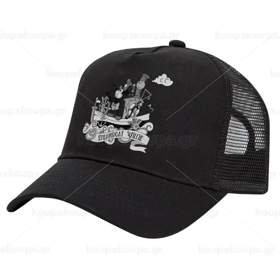 Mickey steamboat, Καπέλο Trucker με Δίχτυ, Μαύρο, (ΒΑΜΒΑΚΕΡΟ, ΠΑΙΔΙΚΟ, UNISEX, ONE SIZE)