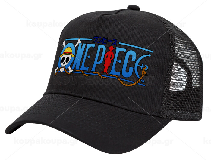 Onepiece logo, Καπέλο Trucker με Δίχτυ, Μαύρο, (ΒΑΜΒΑΚΕΡΟ, ΠΑΙΔΙΚΟ, UNISEX, ONE SIZE)