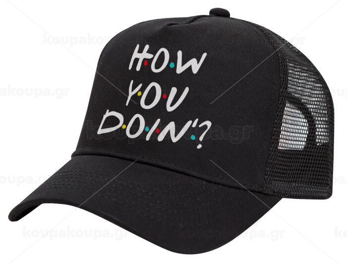 Friends How You Doin'?, Καπέλο Trucker με Δίχτυ, Μαύρο, (ΒΑΜΒΑΚΕΡΟ, ΠΑΙΔΙΚΟ, UNISEX, ONE SIZE)