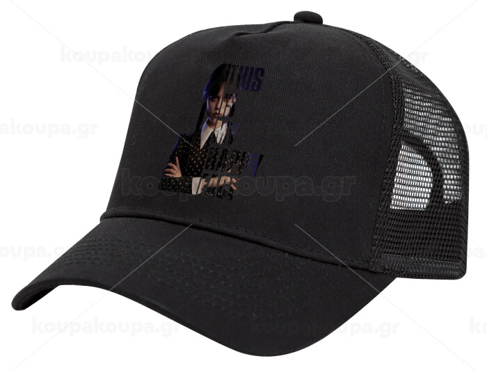 Wednesday, This is my happy face, Καπέλο Trucker με Δίχτυ, Μαύρο, (ΒΑΜΒΑΚΕΡΟ, ΠΑΙΔΙΚΟ, UNISEX, ONE SIZE)