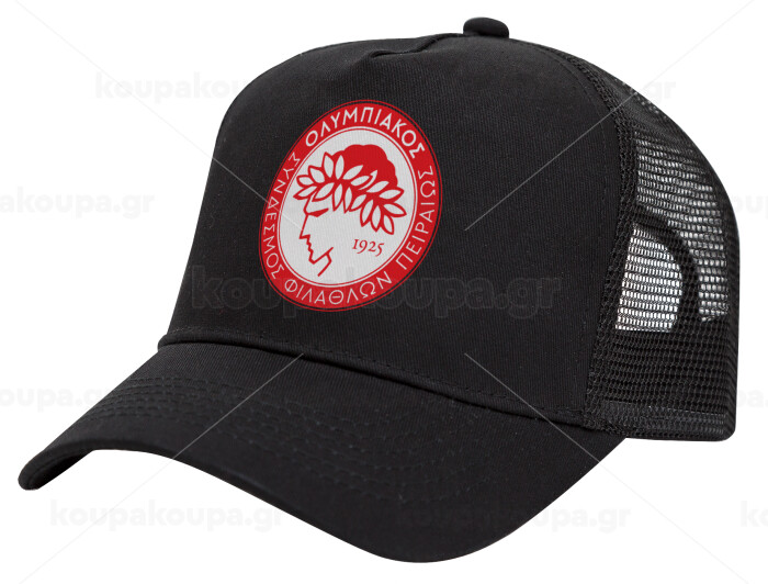 Ολυμπιακός, Καπέλο Trucker με Δίχτυ, Μαύρο, (ΒΑΜΒΑΚΕΡΟ, ΠΑΙΔΙΚΟ, UNISEX, ONE SIZE)