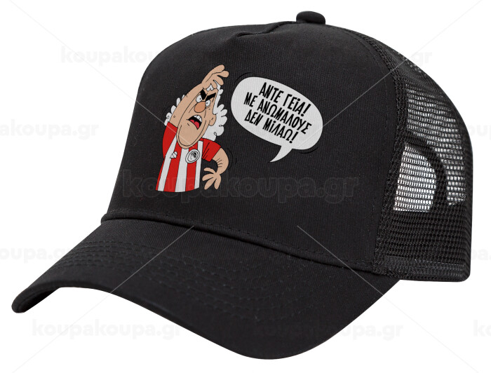 Τάκης, Άντε γεια, με ανώμαλους δεν μιλάω!, Καπέλο Trucker με Δίχτυ, Μαύρο, (ΒΑΜΒΑΚΕΡΟ, ΠΑΙΔΙΚΟ, UNISEX, ONE SIZE)