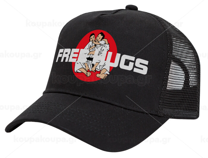 JUDO free hugs, Καπέλο Trucker με Δίχτυ, Μαύρο, (ΒΑΜΒΑΚΕΡΟ, ΠΑΙΔΙΚΟ, UNISEX, ONE SIZE)