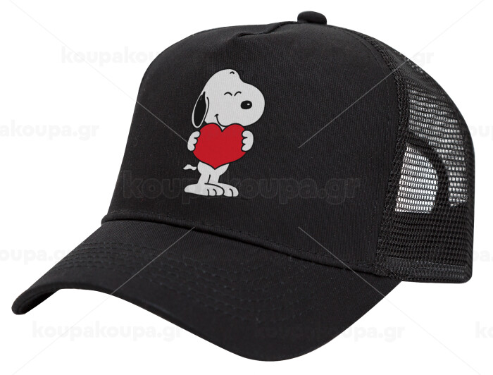 Snoopy takemy heart, Καπέλο Trucker με Δίχτυ, Μαύρο, (ΒΑΜΒΑΚΕΡΟ, ΠΑΙΔΙΚΟ, UNISEX, ONE SIZE)