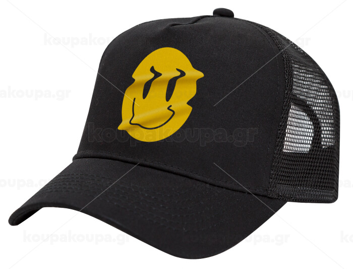 Smile avatar distrorted, Καπέλο Trucker με Δίχτυ, Μαύρο, (ΒΑΜΒΑΚΕΡΟ, ΠΑΙΔΙΚΟ, UNISEX, ONE SIZE)