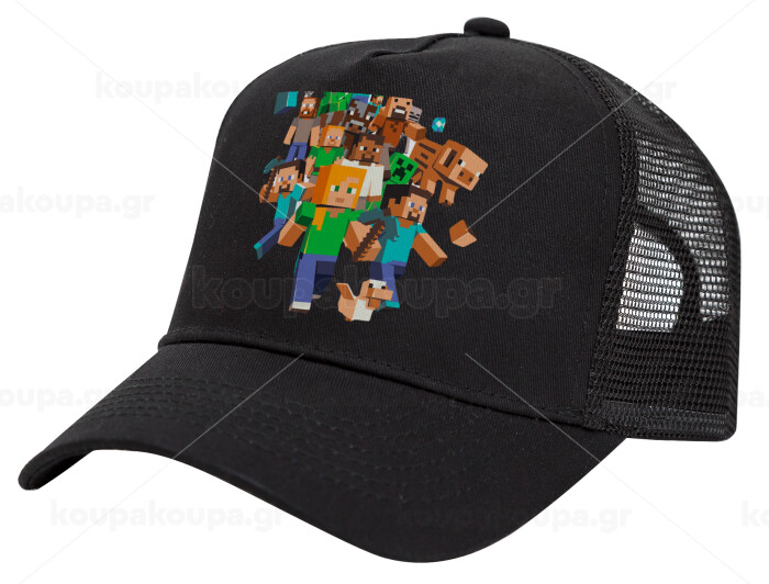 Minecraft adventure, Καπέλο Trucker με Δίχτυ, Μαύρο, (ΒΑΜΒΑΚΕΡΟ, ΠΑΙΔΙΚΟ, UNISEX, ONE SIZE)