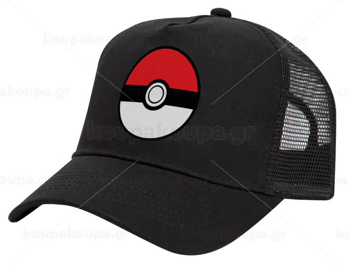 Pokemon ball, Καπέλο Trucker με Δίχτυ, Μαύρο, (ΒΑΜΒΑΚΕΡΟ, ΠΑΙΔΙΚΟ, UNISEX, ONE SIZE)